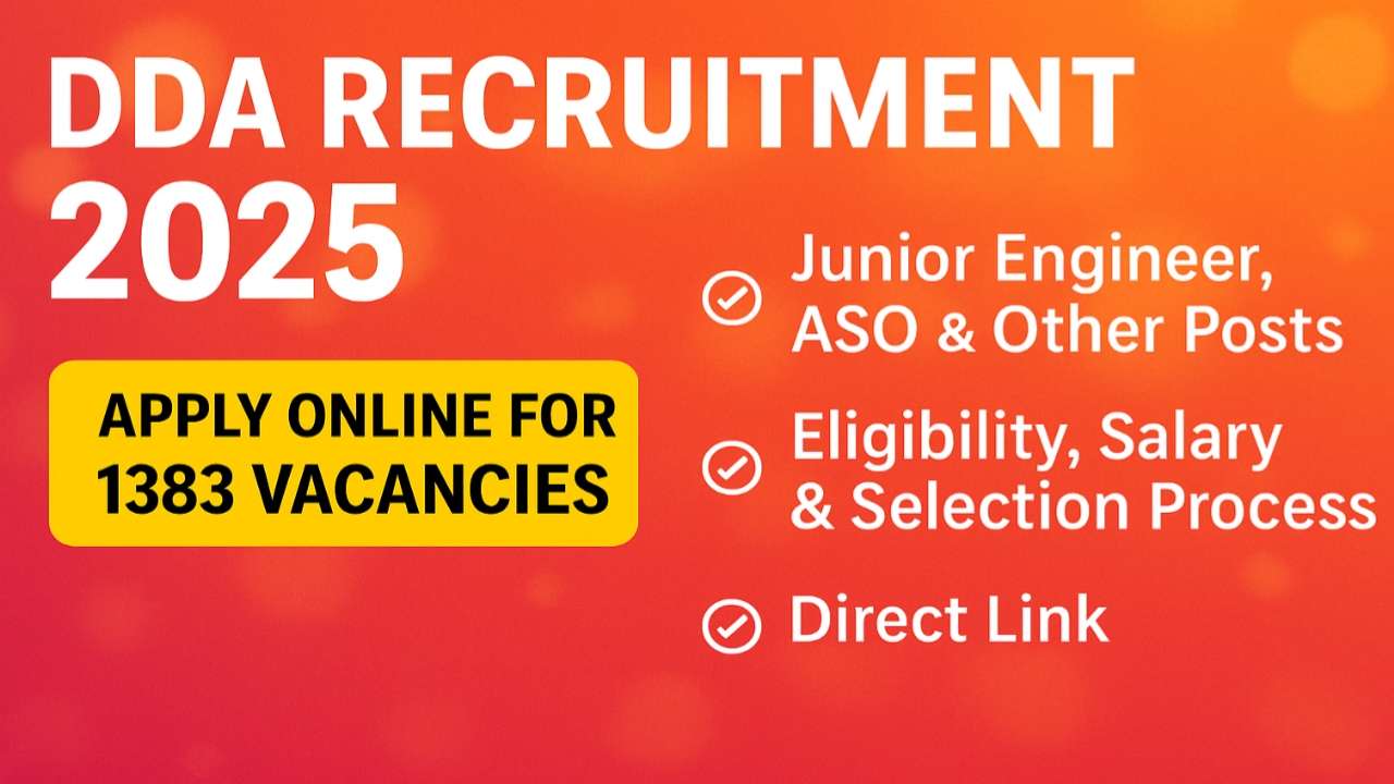Apply for DDA Recruitment 2025 and secure your future with 1383 vacancies including Junior Engineer, ASO, and more. Check eligibility, salary, selection process, and apply online now