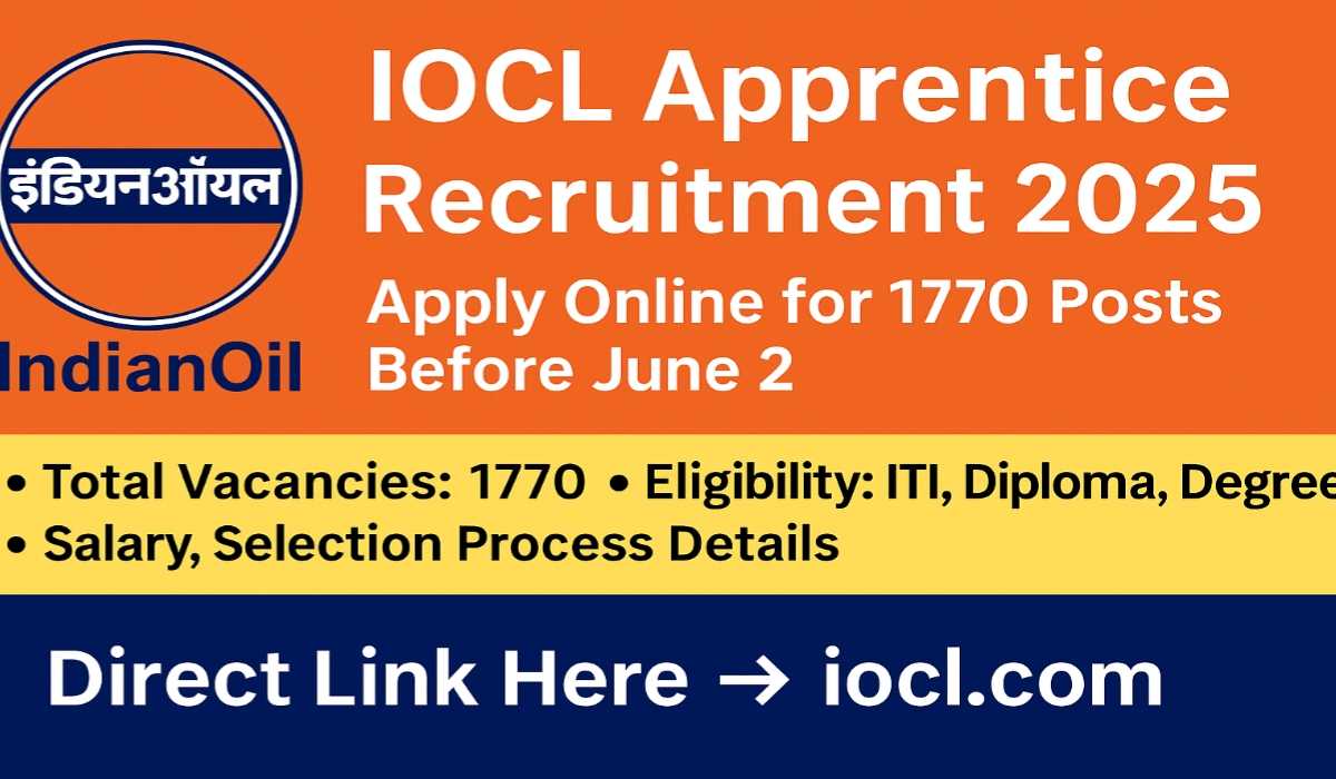 Apply now for IOCL Apprentice Recruitment 2025 for 1770 vacancies across India. Check eligibility, salary, selection process & direct apply link. Last date: June 2.