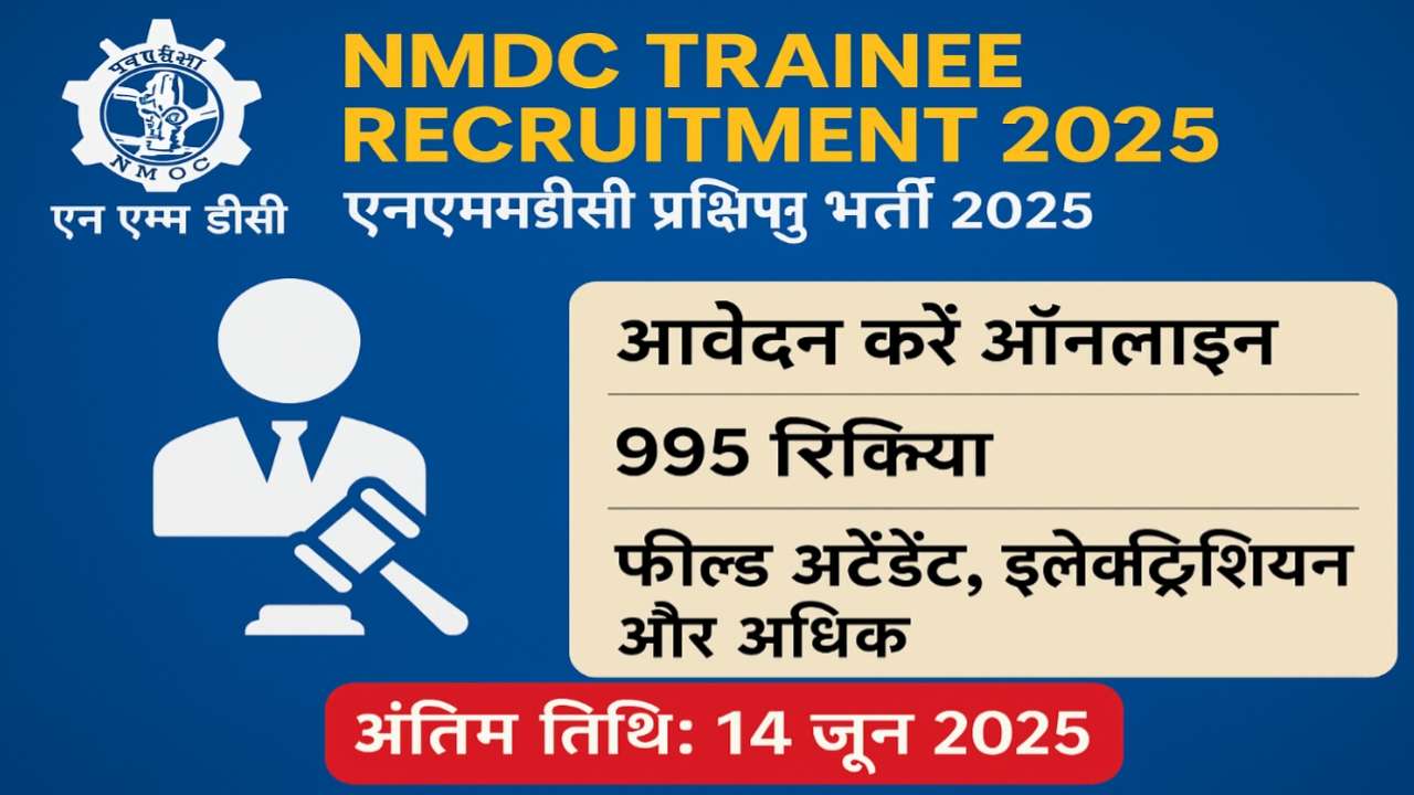 NMDC Trainee Recruitment 2025 with 995 vacancies for Field Attendant, Electrician & more. Last date: June 14, 2025. Eligibility, salary, and online application details here.